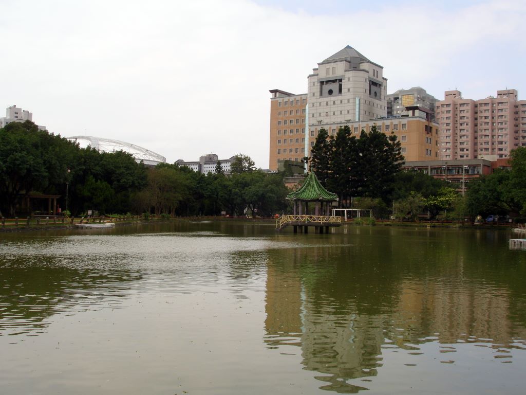 A pool on campus with a morbid backstory. Apparently there used to be a walkway to the platform in the middle... but too many kids were jumping off it and drowning themselves, so the administration removed the bridge.