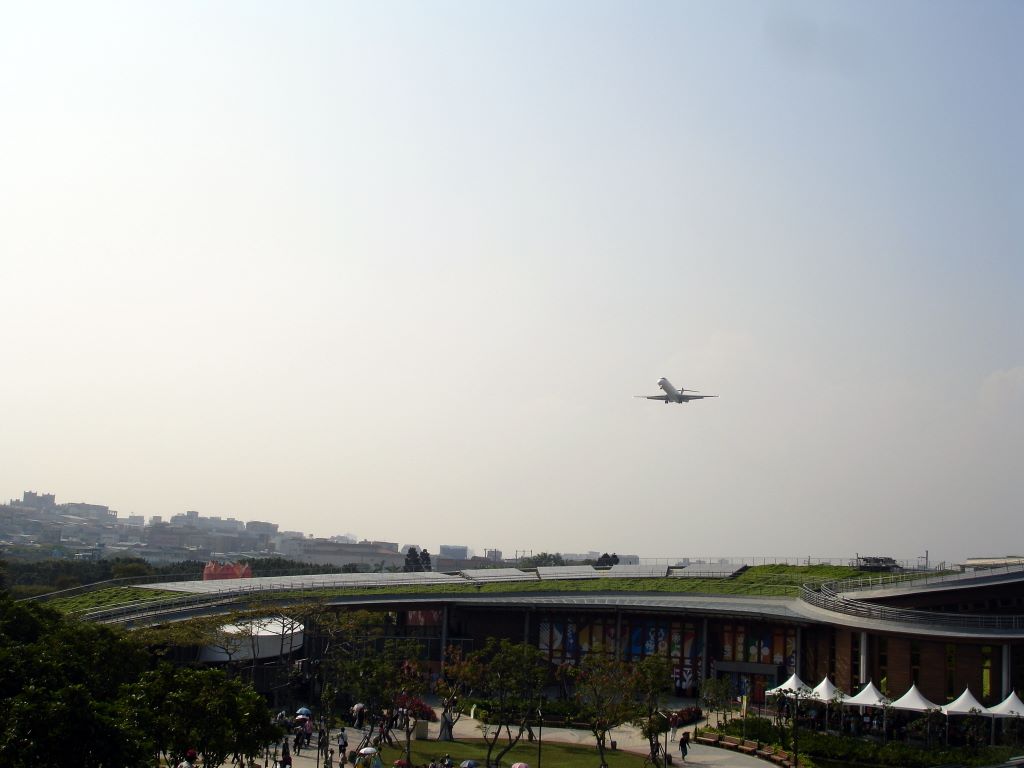 The flower expo took place right next to an airport... so every 10-15 minutes there would be a defeaning noise as a plane took-off or landed. Also, those are indeed solar panels on the roof of the opposite building.