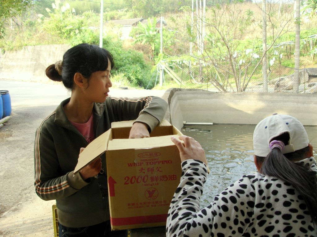 Near the top of the hill, we stopped by someone's house. Feeding fish here...
