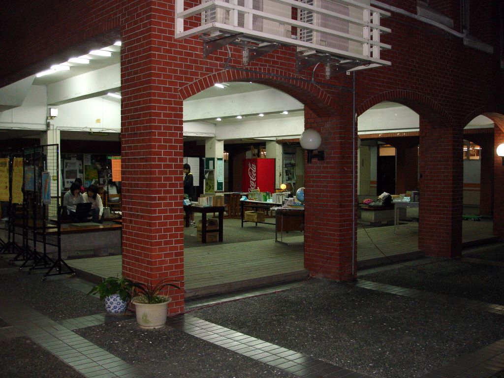 Bouncing around the courtyard of the liberal arts building. This particular photo shows what appeared to be a used-book sales area.