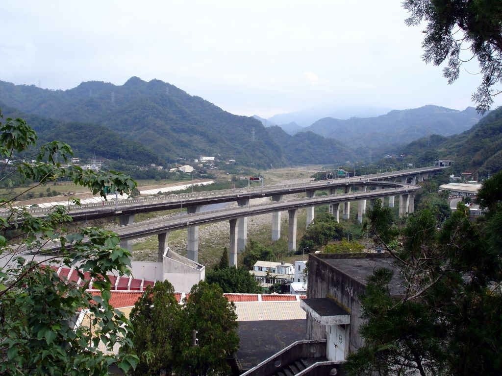 After walking up the tracks... the view back down. The freeway system of Taiwan is in plain sight here.