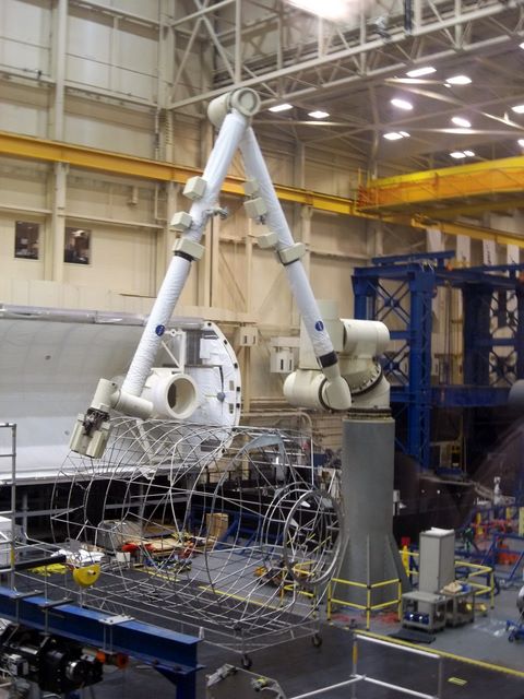May 7 - Inside the space shuttle hangar - a multidimensional crane/arm